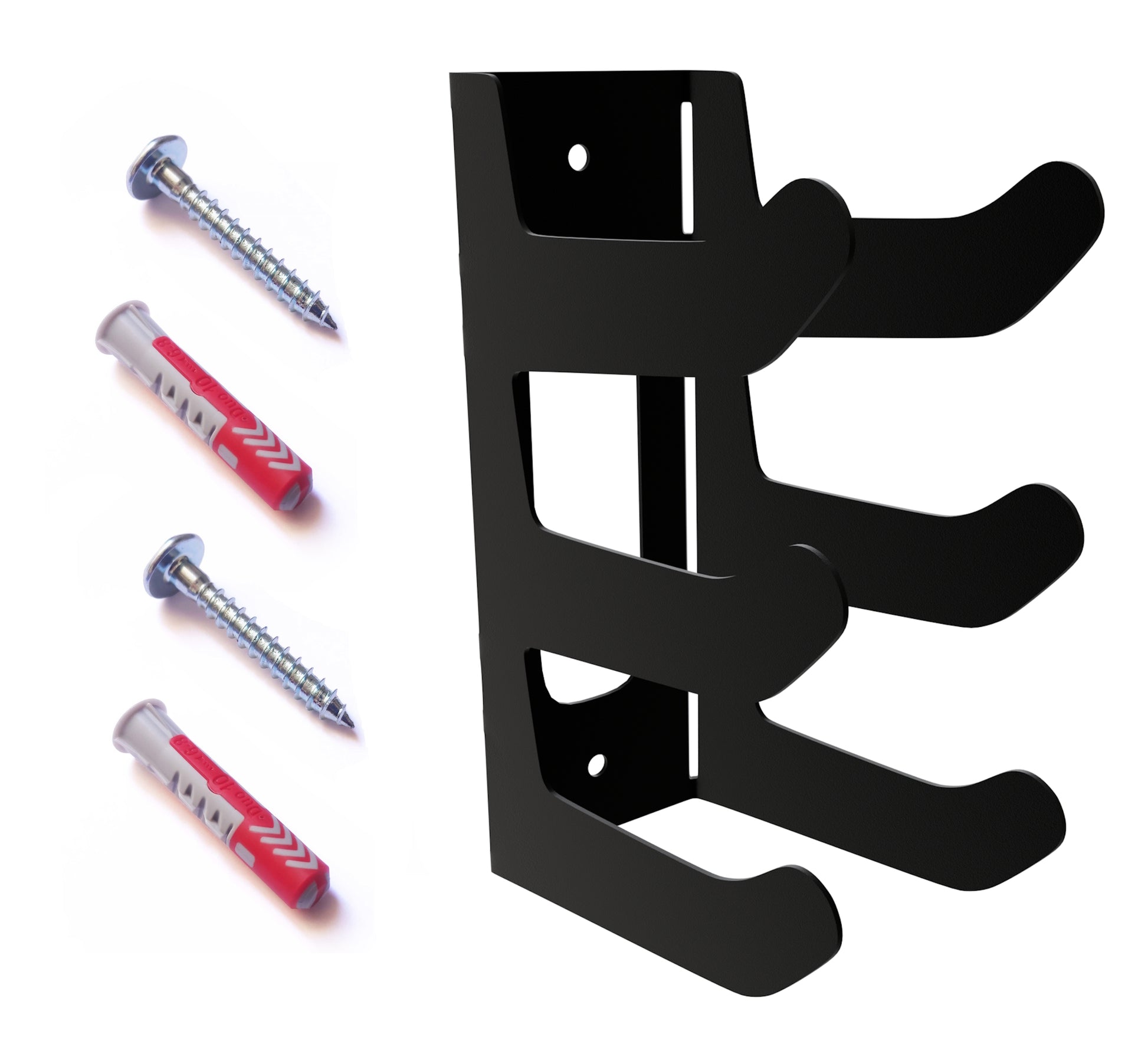 Soporte de pared para mancuernas fabricado en acero y pintado al horno.